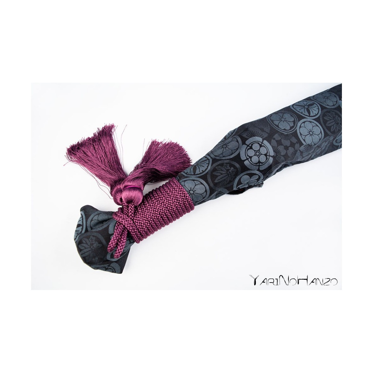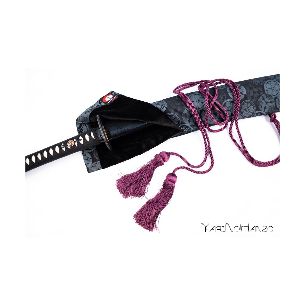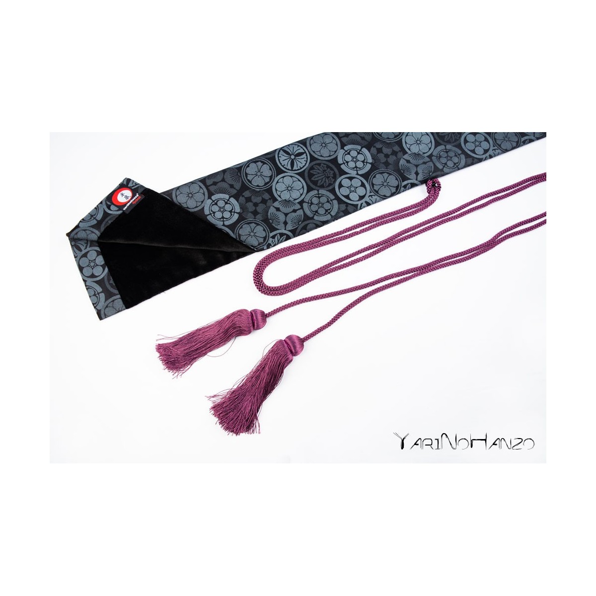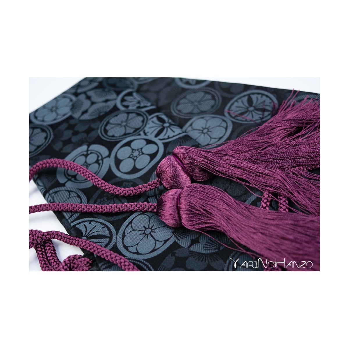 Katana Bukuro artesanal realizada con tejido japonés con emblemi delle famiglie samurai (Kamon)