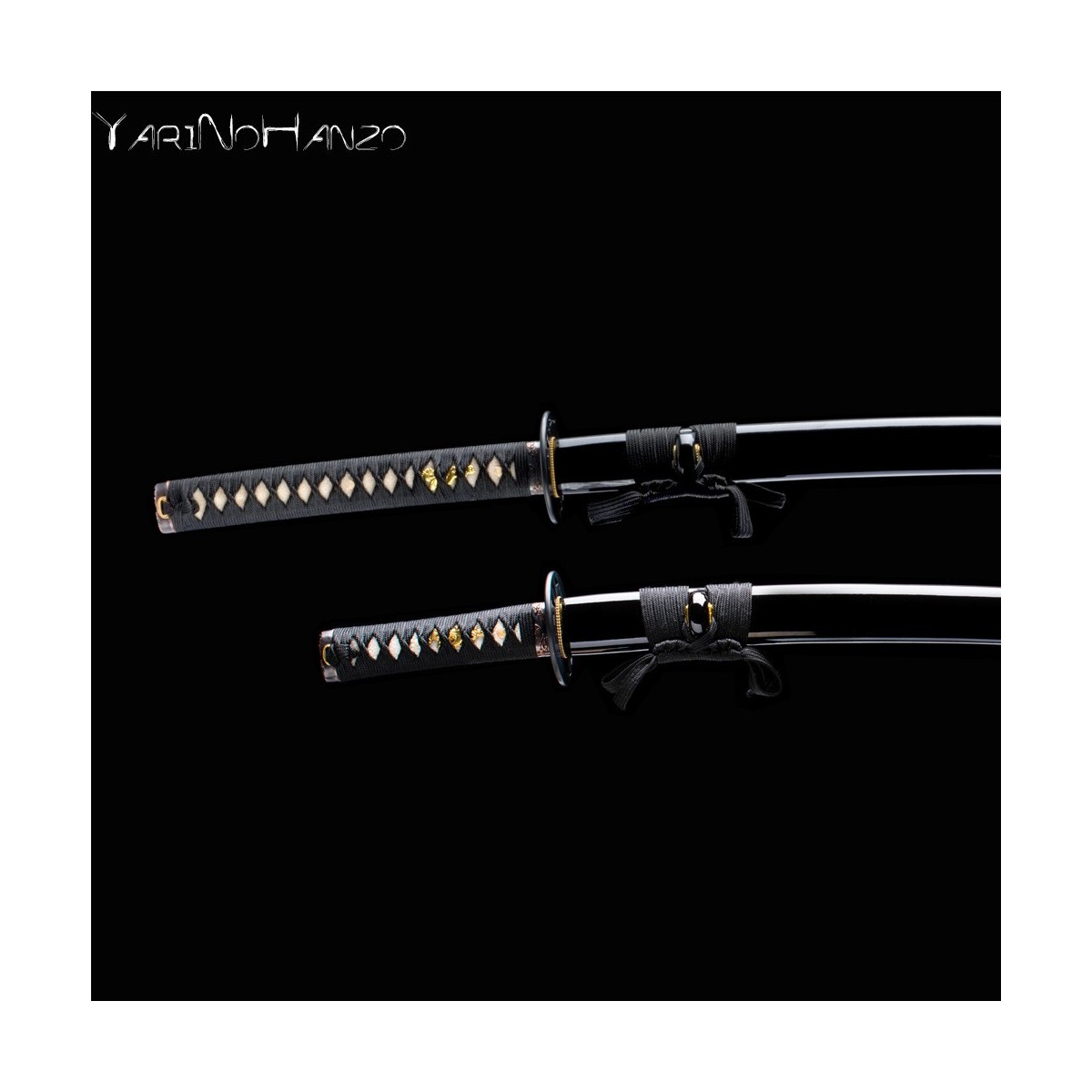 Forjadas en acero AISI 1045 con bohi, ofrecen un diseño completamente negro, con tsuba de hierro, tsukaito negro y saya lacada en negro.