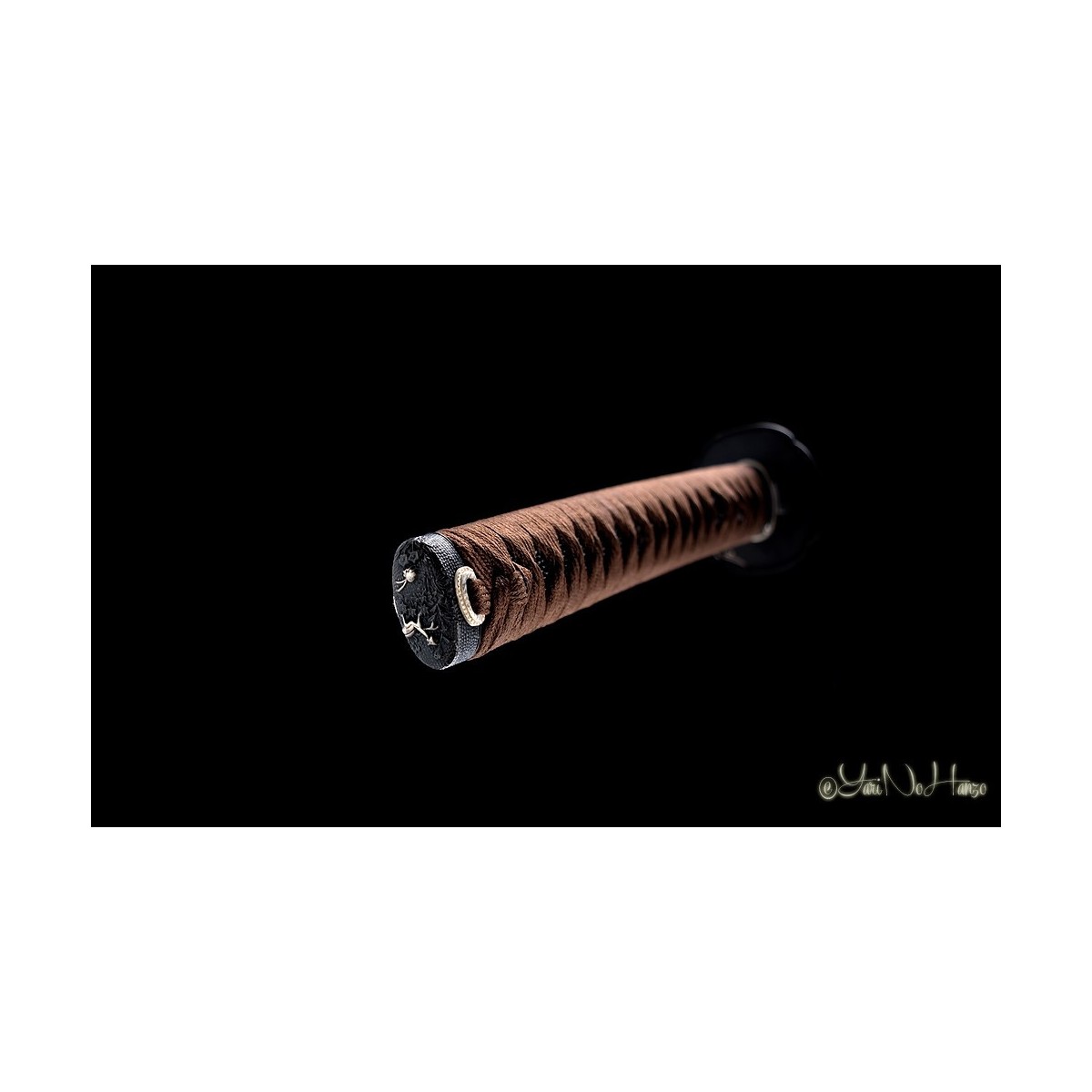 Su tsuka con hishigami y tsuka-ito de seda marrón garantiza un agarre firme y duradero, mientras que la saya lacada en negro con refuerzo de cuerno de búfalo aporta resistencia y sofisticación.