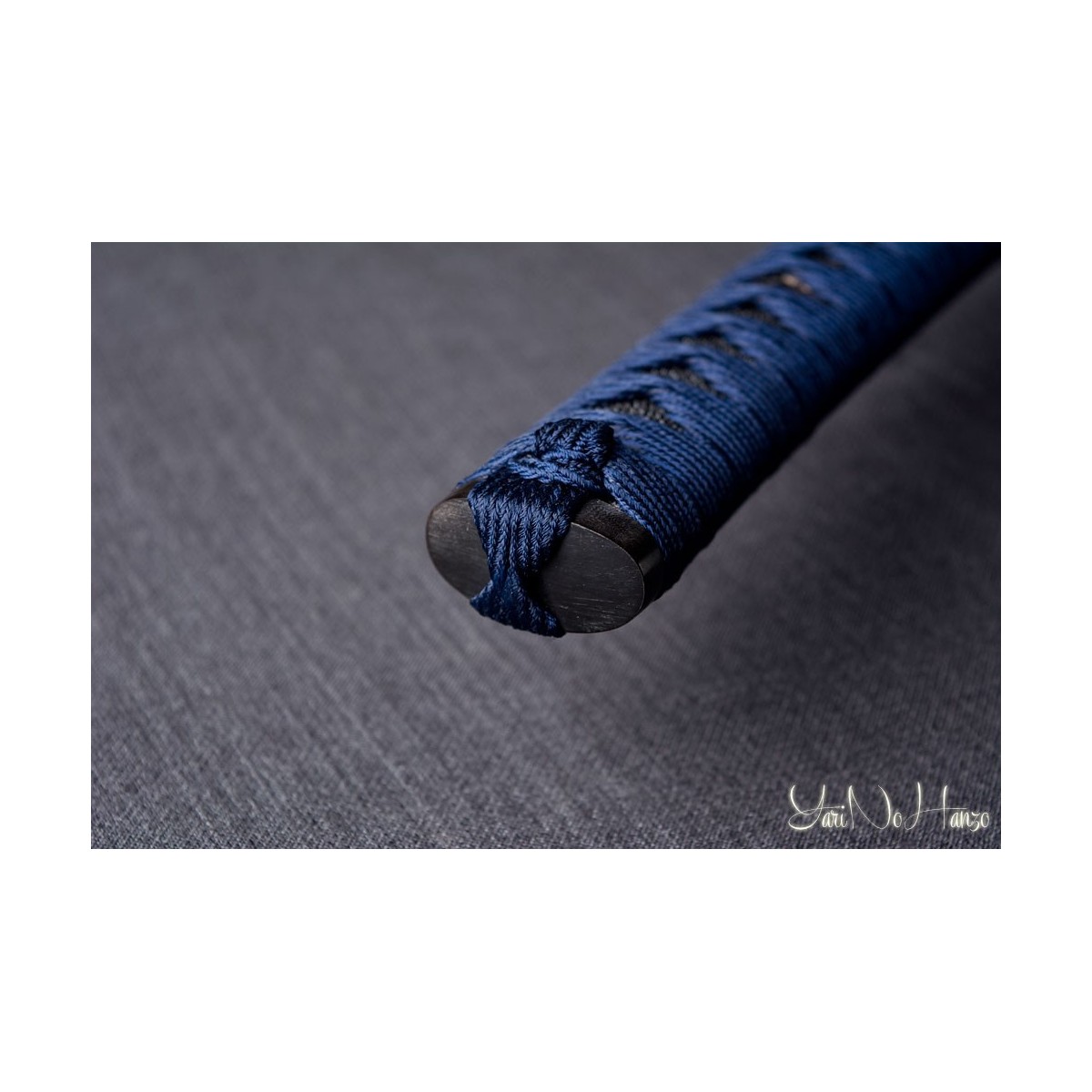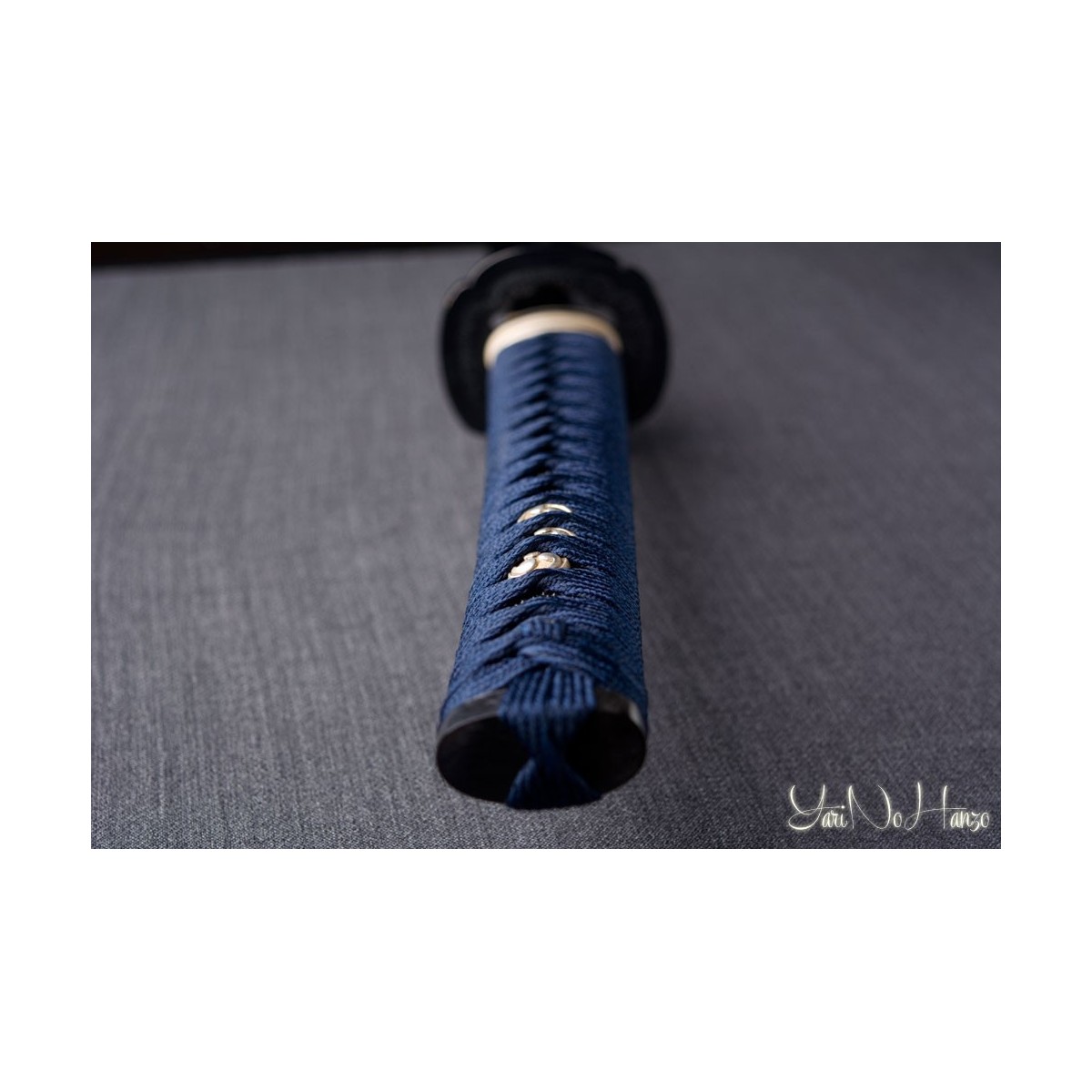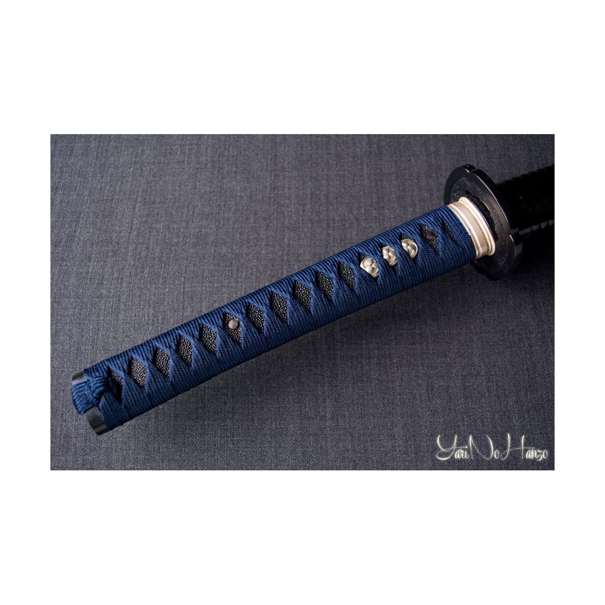 - Tsukaito de seda azul y estilo Tsukamaki Hinerimaki alterno con Hishigami.
