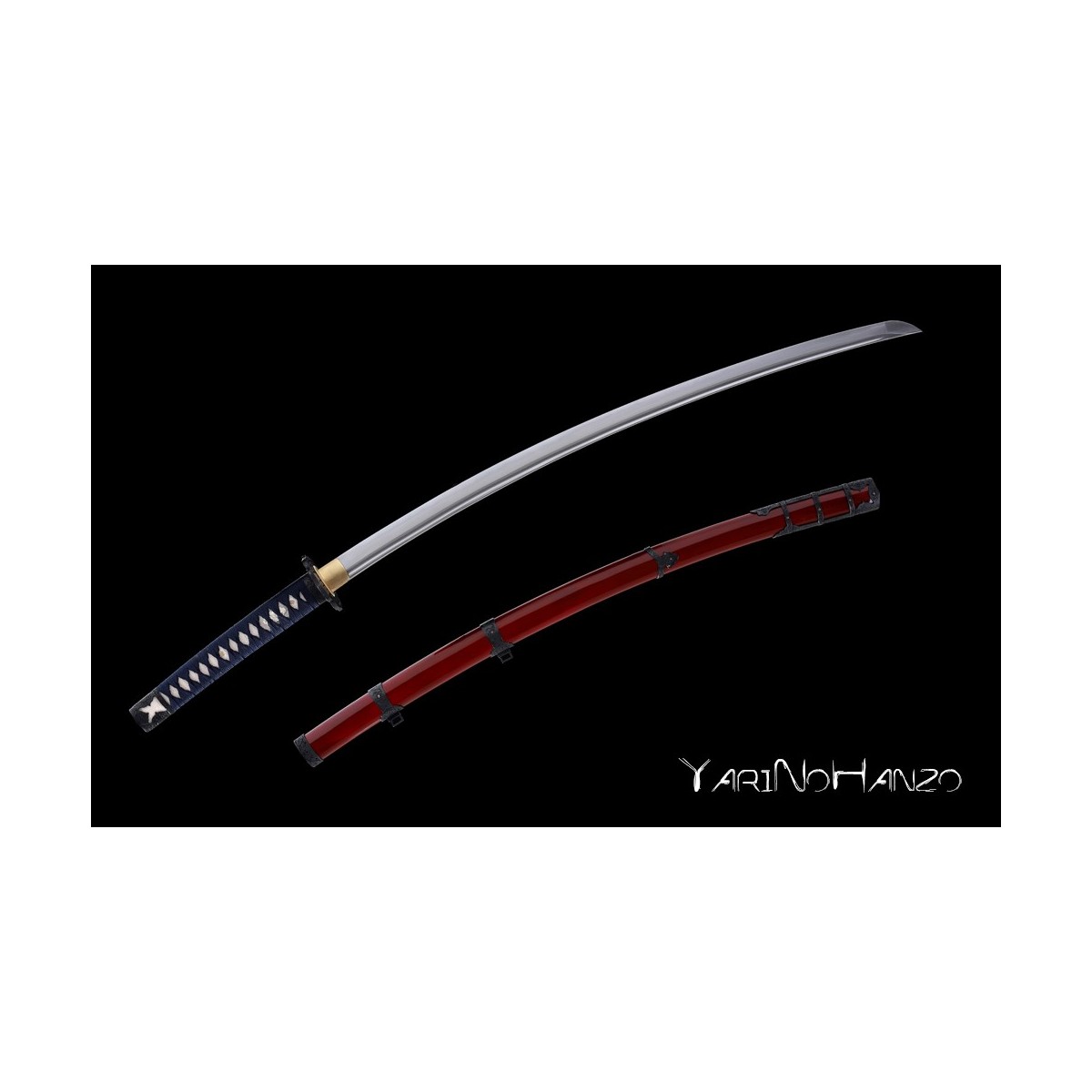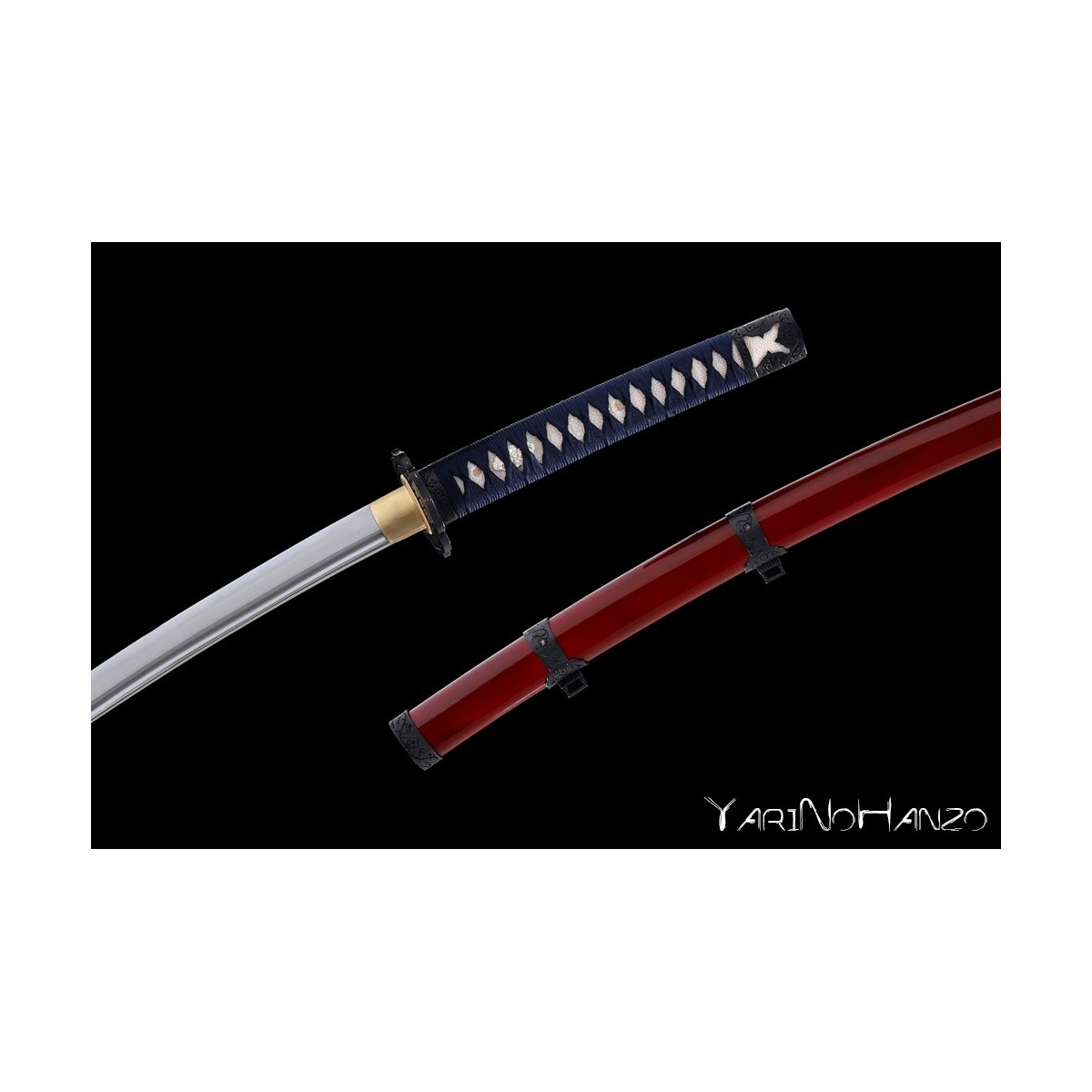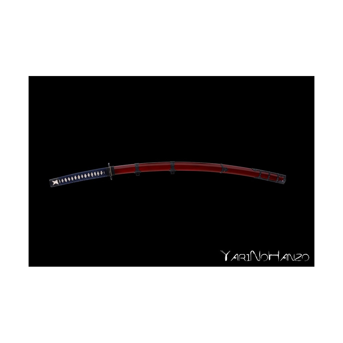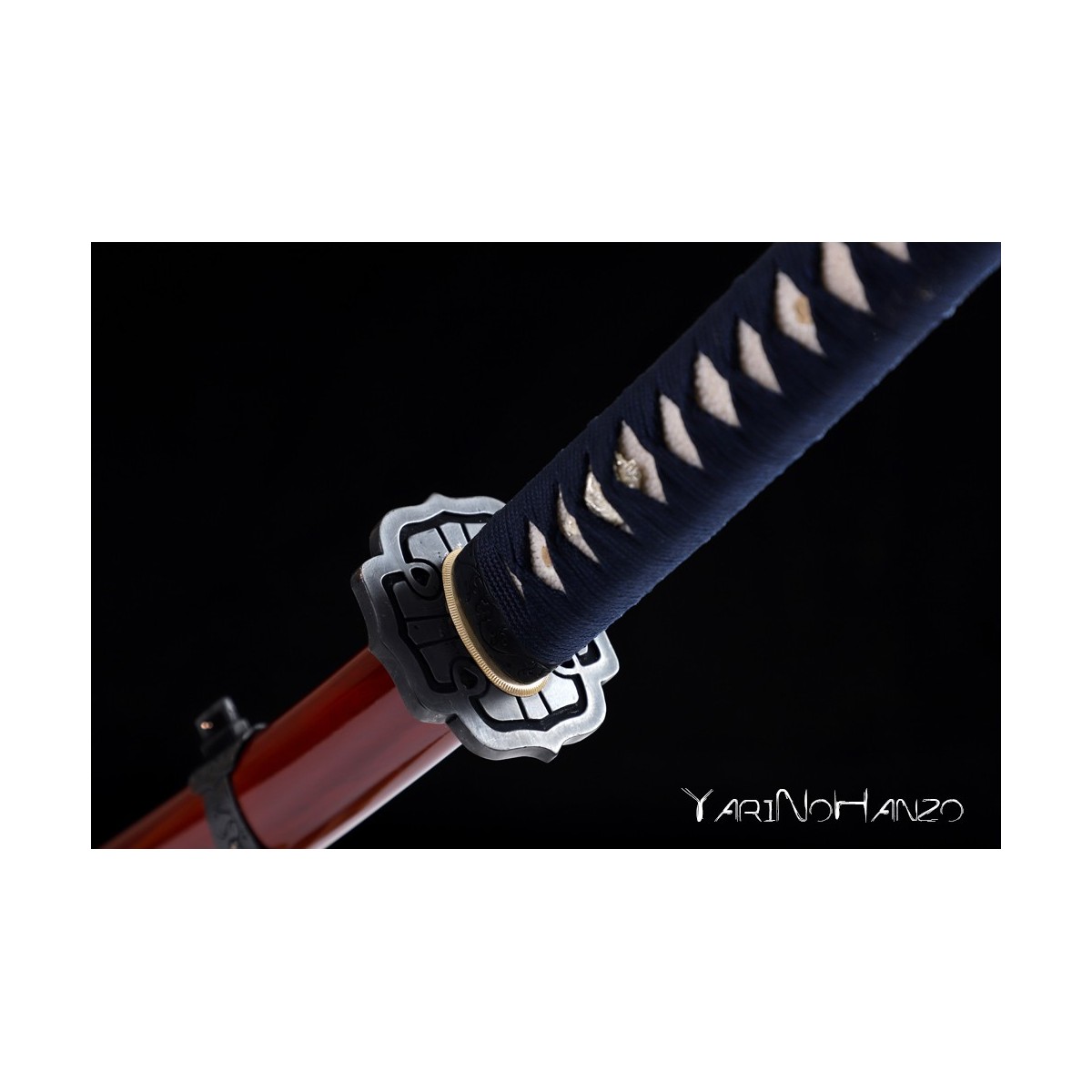 - Saya de madera lacada en rojo, tsukaito Azul oscuro.