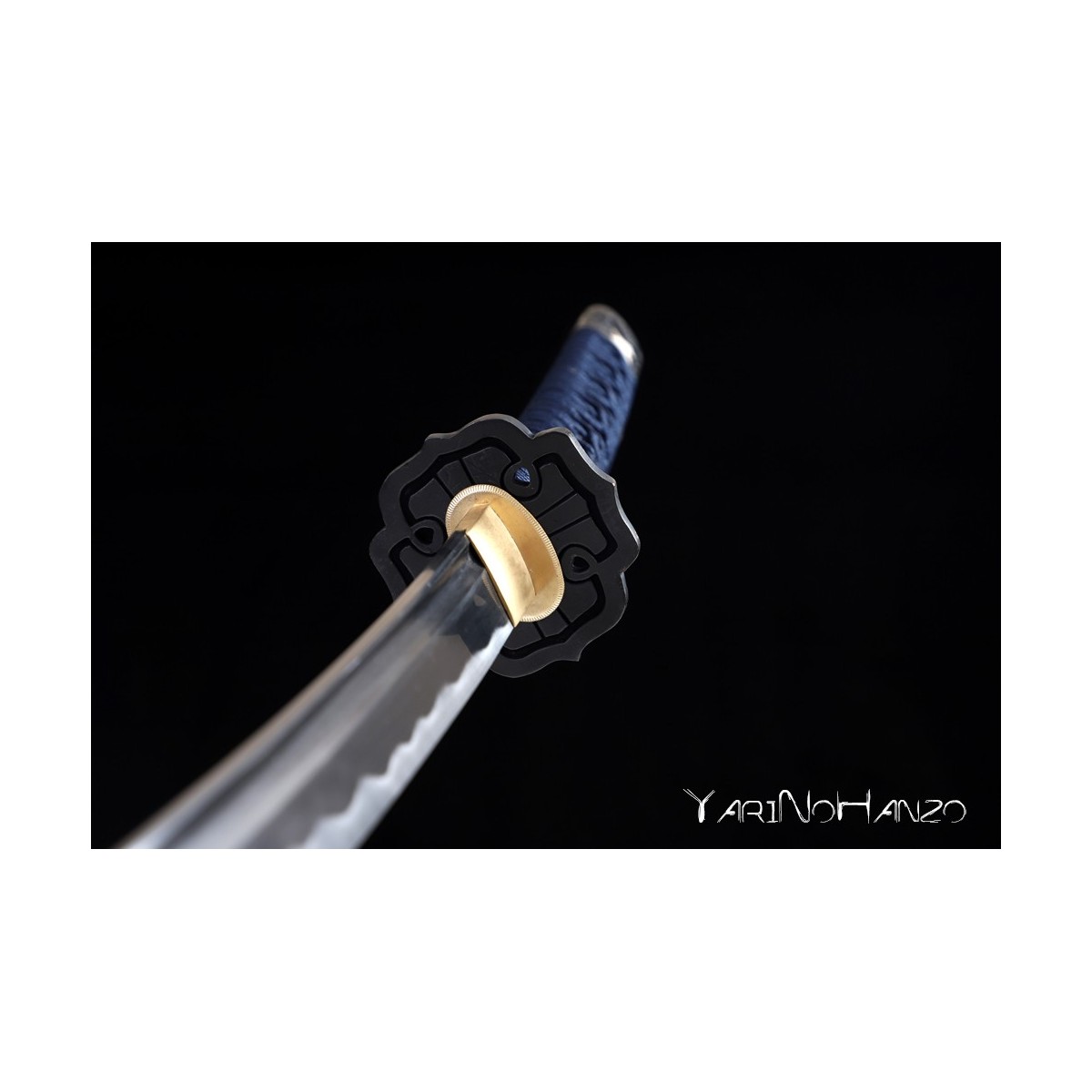 - Encordado de Tsukaito de seda azul, proporcionando un agarre firme y antideslizante para un manejo óptimo.